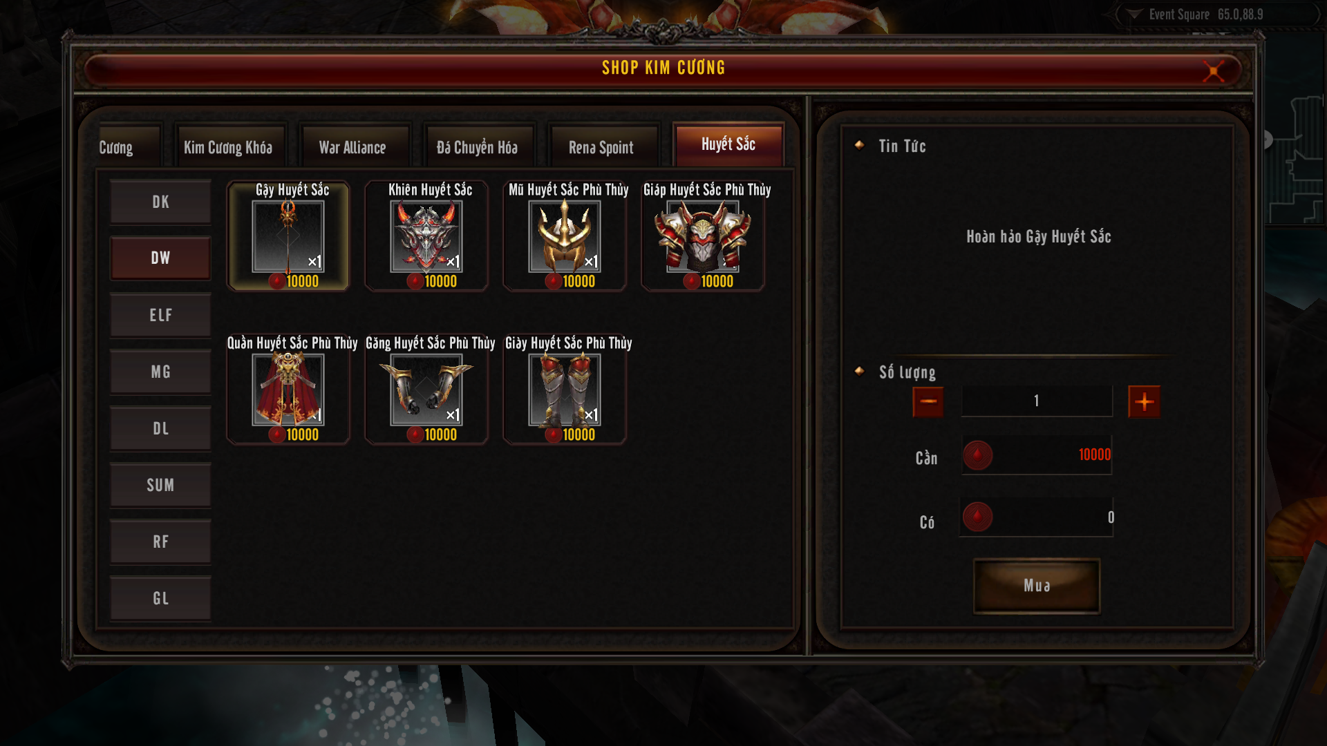 ♛ Các vật phẩm tại mục Hot trên Cửa hàng Huyết Sắc: